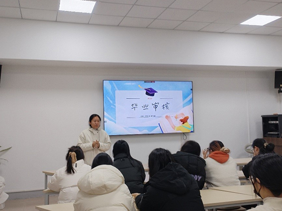 会议期间,教学办刘希茜老师担任“毕业流程导航员”,为同学们详细介绍了毕业前论文撰写与答辩的各项流程。从论文选题的关键要点、开题报告的规范撰写,到论文正文的严谨创作、查重修改的注意事项,再到最终答辩,刘老师都一一进行了细致入微的讲解,让同学们对论文这一毕业“重头戏”有了清晰的认识和把握。同时,刘老师还深入解读了毕业审核中关于素质拓展学分和课程学分的问题,针对学分异常的同学,更是进行了一对一的耐心讲解和确认,确保每一位同学都清楚自己的学业状况和毕业要求,为顺利毕业筑牢基础。