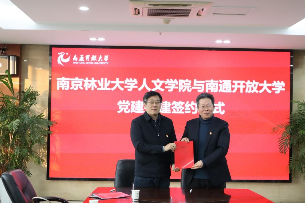 为深入推进“党建引领高质量发展”专项行动,搭建党建合作与协同育人新平台,2026年1月27日下午,21点策略 、生态文明传播学院与南通开放大学举行党建共建签约仪式。21点策略 (生态文明传播学院)党委书记卫欣与南通开放大学党委书记陆永明代表双方签署党建共建协议,双方教师代表共同参与签约与交流座谈。