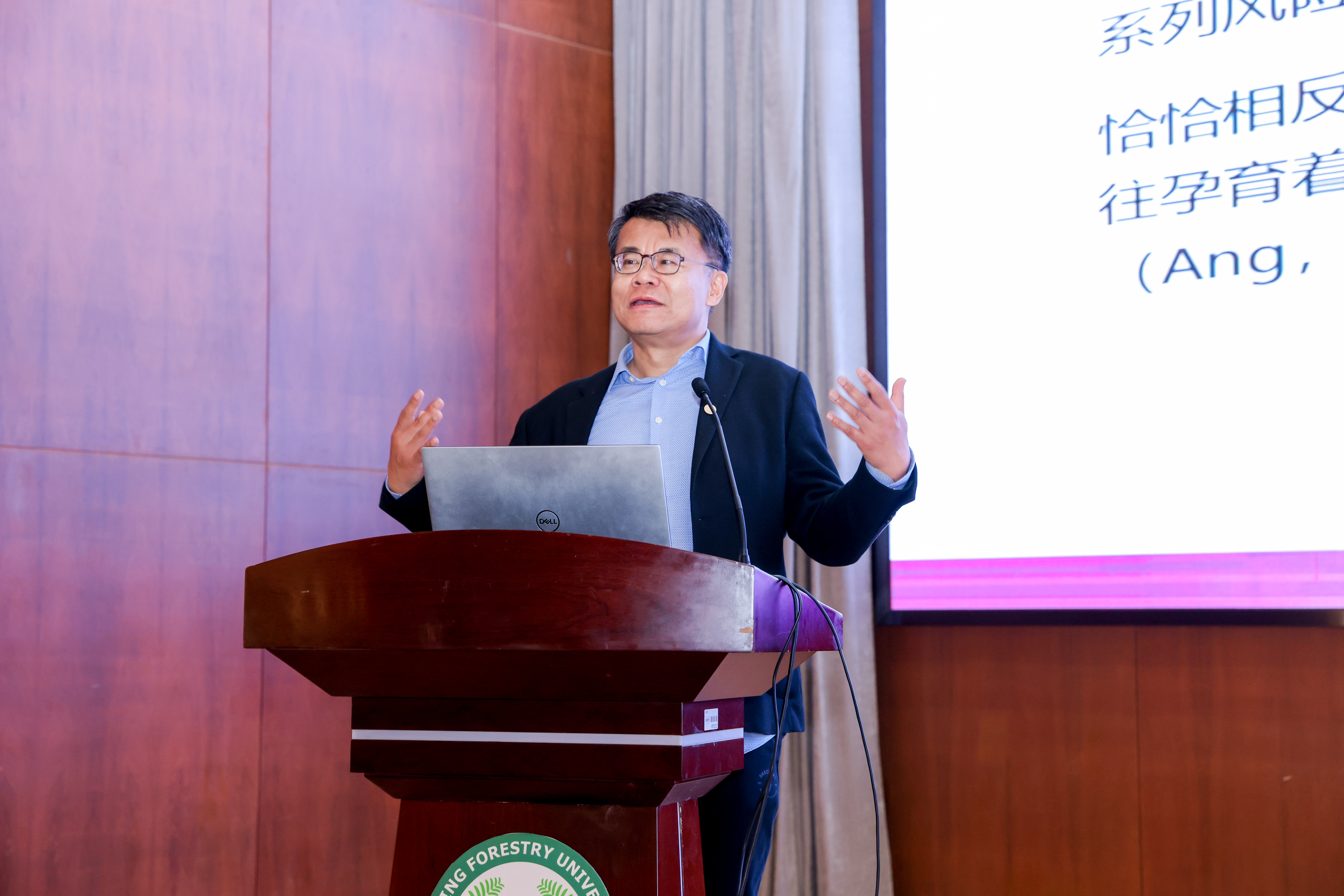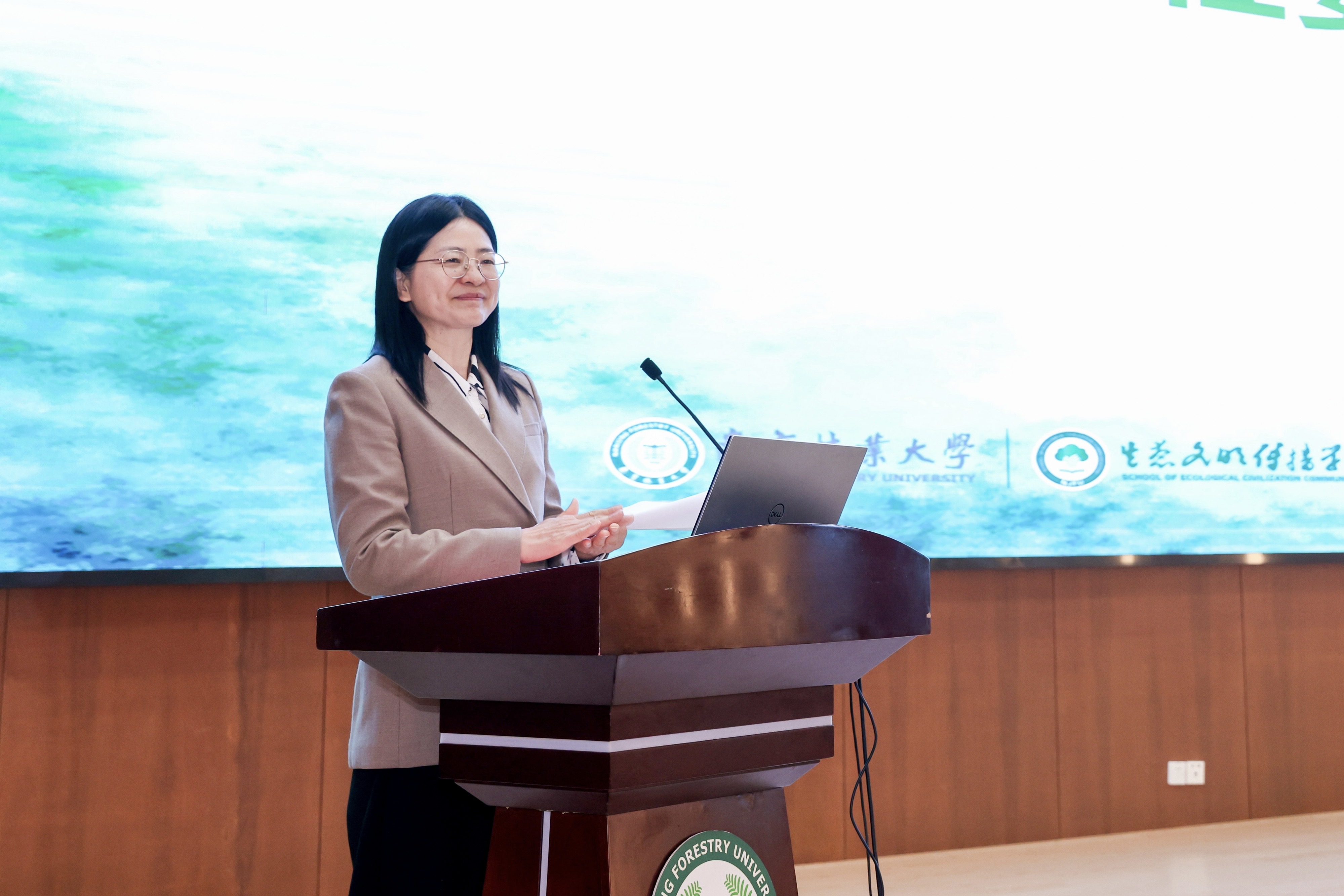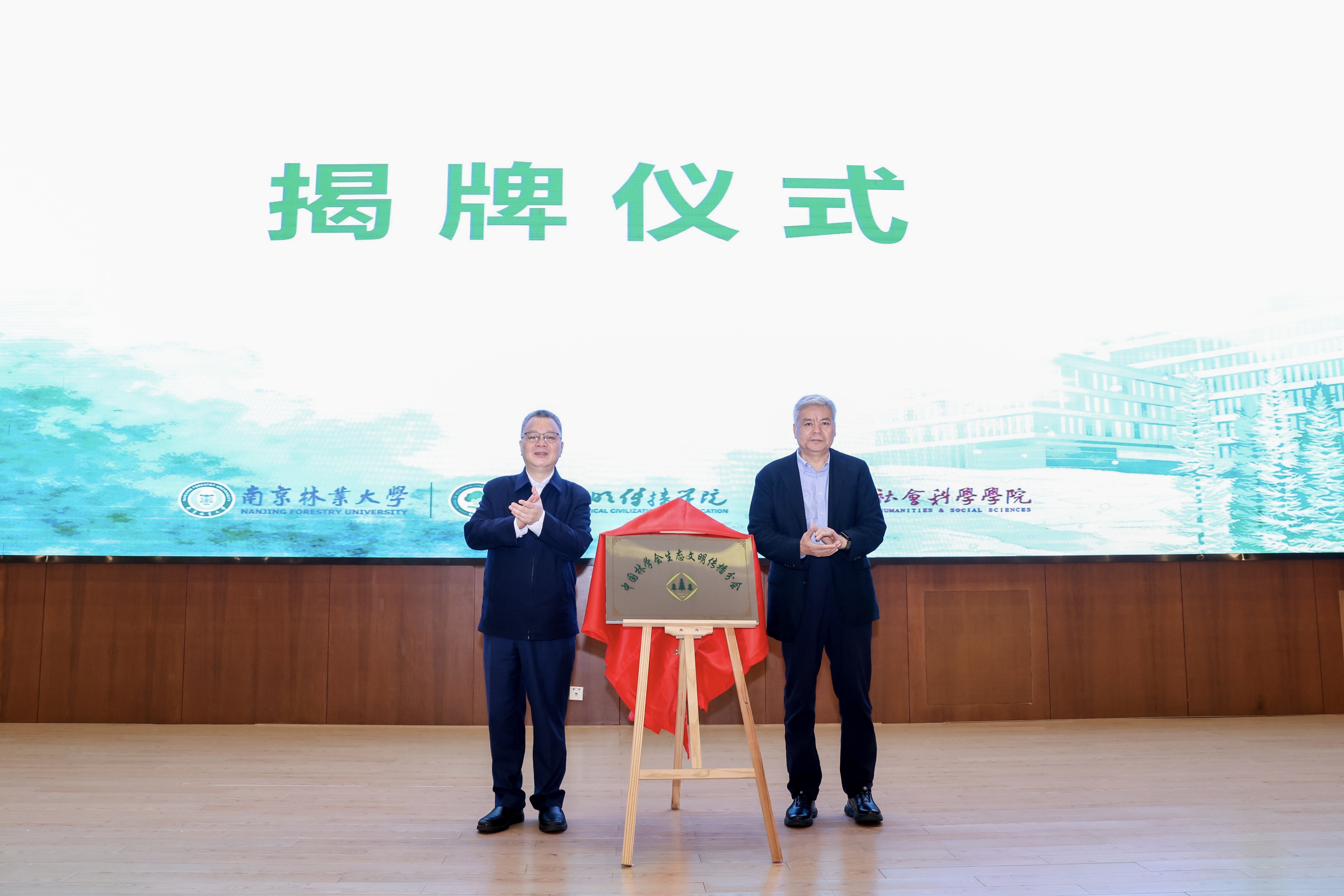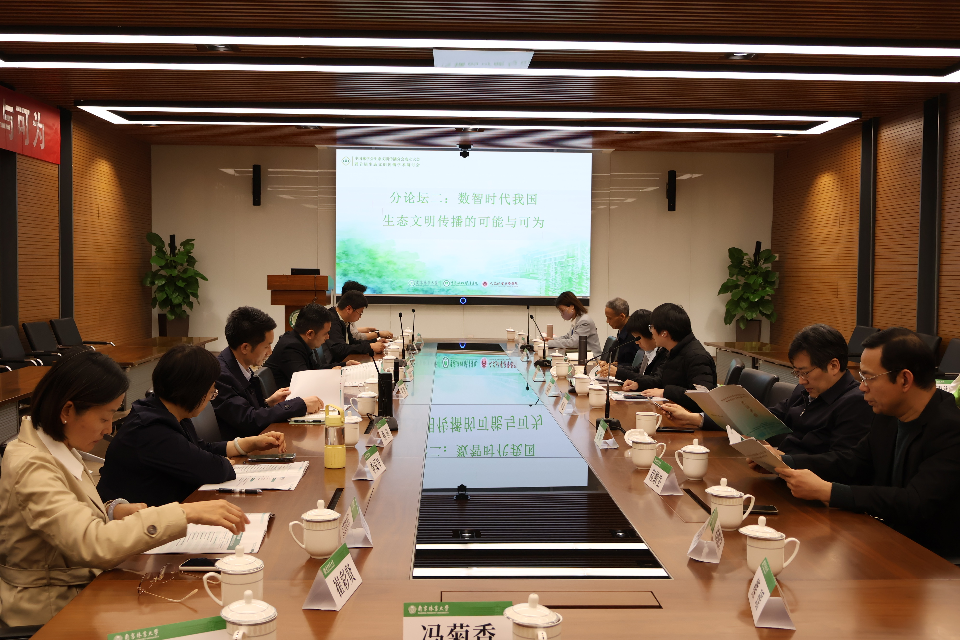 4月11日,中国林学会生态文明传播分会成立大会暨首届生态文明传播学术研讨会在我校图书馆8B118报告厅举行。中国林学会理事长赵树丛,中国林业出版社总经理杨波,我校校长勇强,江苏省广播电视总台党委书记、台长、南京大学新闻传播学院院长葛莱,中国绿色时报社社长、总编辑刘雄鹰,中国林学会副秘书长曾祥谓,副校长张晓琴,党委常委、宣传部长、统战部长董博等出席大会。来自全国高校、科研院所、主流媒体的专家学者,学校相关单位主要负责人,生态文明传播学院、21点策略 全体领导班子成员及师生代表等参加活动。大会由董博主持。