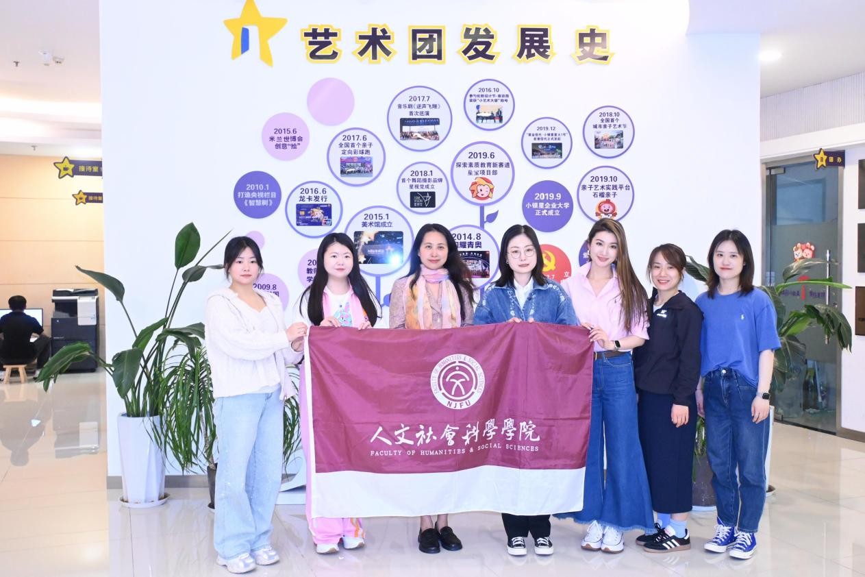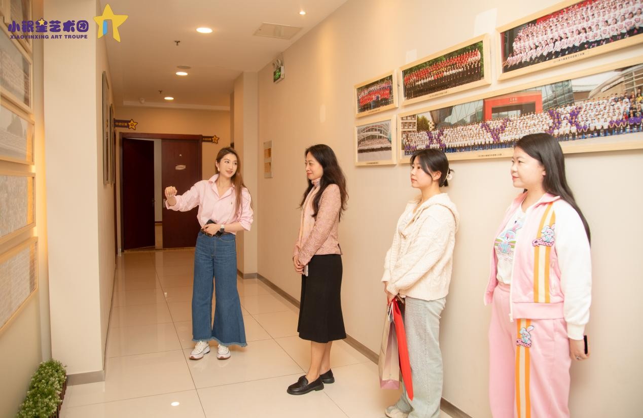 抵达艺术团后,南京小银星艺术团(学校)校长周帆热情接待了学院一行,并带领大家参观了艺术团发展历程展示墙。墙上的时间线清晰记录了艺术团自2010年参与央视《智慧树》栏目起步,逐步发展壮大的历程,包括2015年米兰世博会创意展、2017年音乐剧《进击飞翔》全国巡演、多次全国亲子艺术节参展,以及2019年小银星企业大学正式成立、石榴亲子平台上线等重要节点。学院老师们认真聆听介绍,对小银星艺术团在亲子艺术教育领域的专业深耕、创新实践及显著的社会成效给予高度肯定。